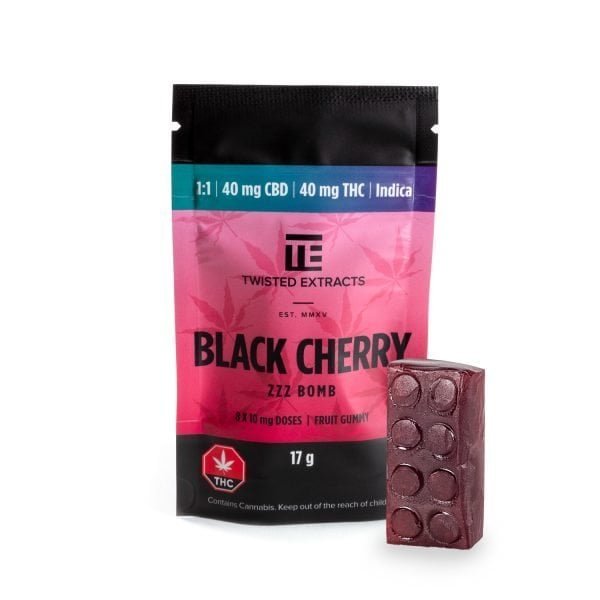 Ingredients: Sugars (corn syrup, sugar from beets), Water, Gelatin, Citric acid, Artificial flavours, Pectin, Coconut oil, Canola oil, Cannabis extract, Carnauba wax, Artificial Colouring